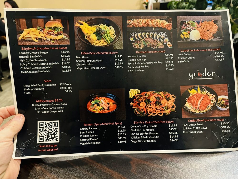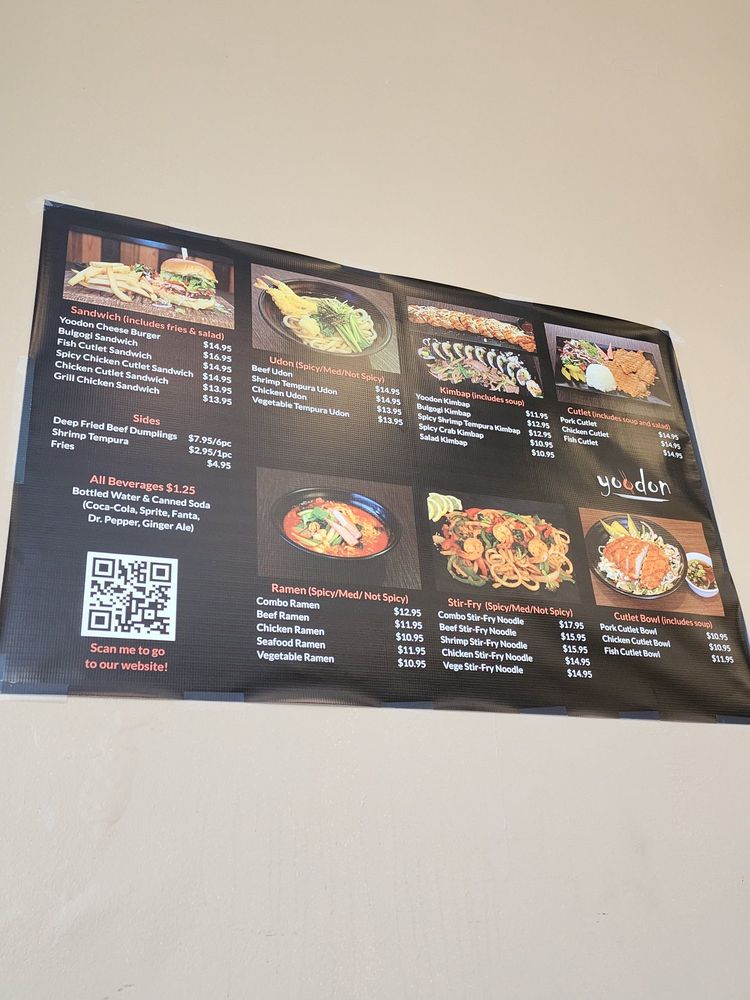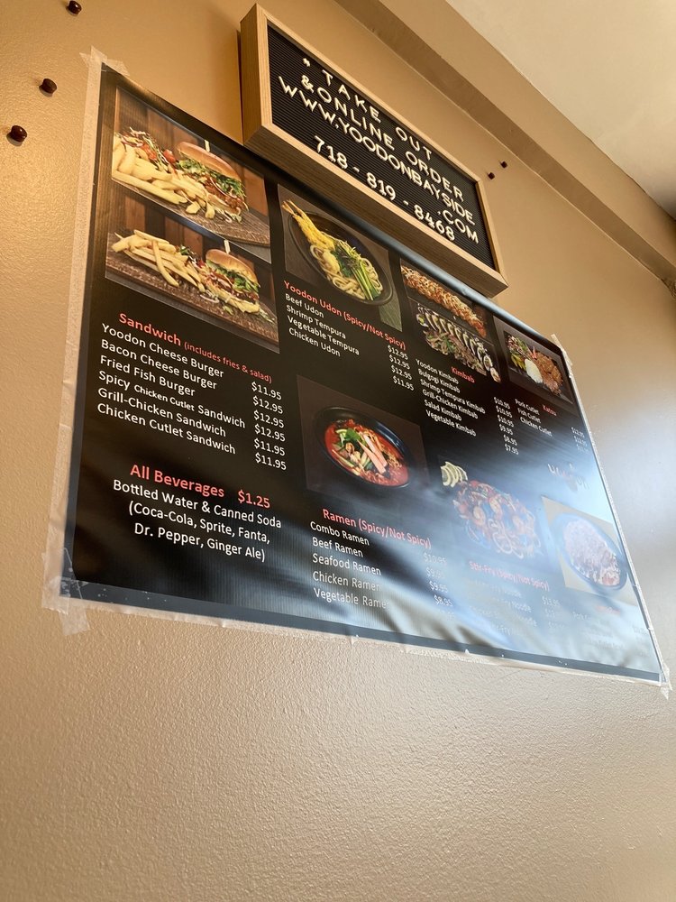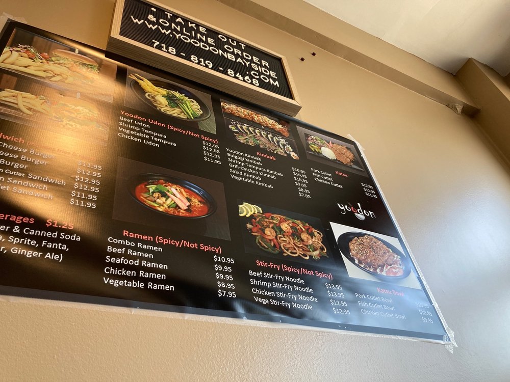 Yoodon is a cozy Korean restaurant located in Bayside, NY, offering a delightful menu filled with traditional Korean dishes. Specializing in udon, ramen, and kimbab, Yoodon provides a range of options for both meat lovers and vegetarians. Customers rave about the homemade broth used in their dishes, like the beef udon and chicken ramen. The family-run business exudes a welcoming atmosphere, with friendly owners and efficient service. Standout items include the chicken cutlet sandwich, shrimp tempura kimbab, and bulgolgi kimbab. The restaurant's commitment to quality ingredients and flavors ensures a satisfying dining experience. With a variety of options for different preferences, Yoodon is a must-visit for those craving authentic Korean cuisine in a casual setting.